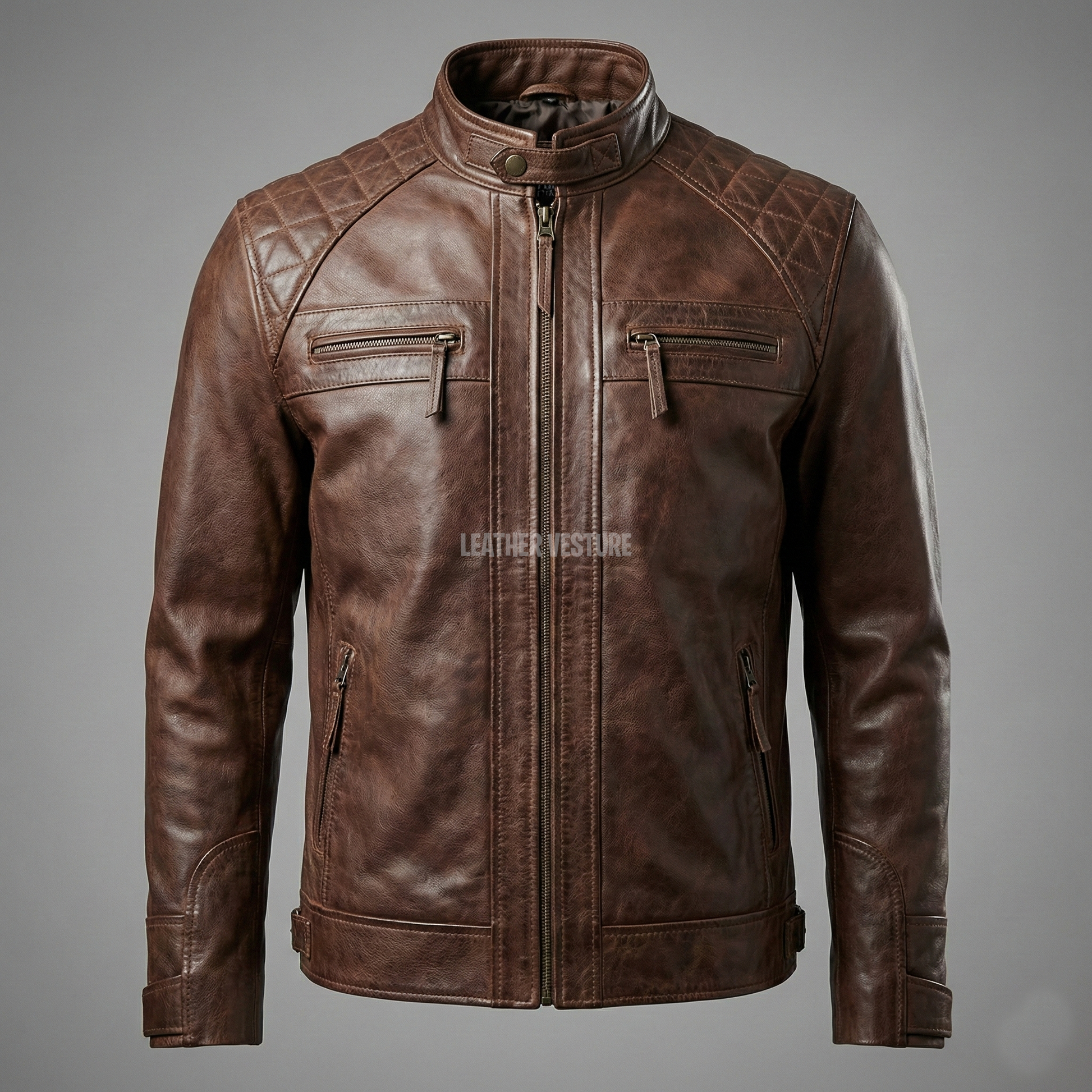 Channel the rebellious spirit of the open road with this rugged yet sophisticated Café Racer jacket. Expertly crafted from 100% genuine leather, this piece features a distinctive distressed antique brown finish that gives it a lived-in, vintage appeal from the very first wear.